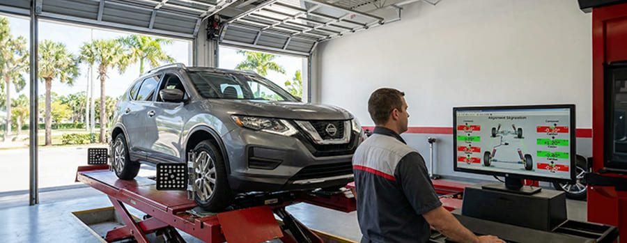 At Nissan of Vero Beach, our certified technicians handle everything from diagnosing inner-edge wear to performing full suspension evaluations using advanced alignment technology. During every inspection, we take a comprehensive look at your vehicle’s wheel alignment, tire balance, suspension components, tire pressure, and even brake wear to ensure nothing is overlooked.